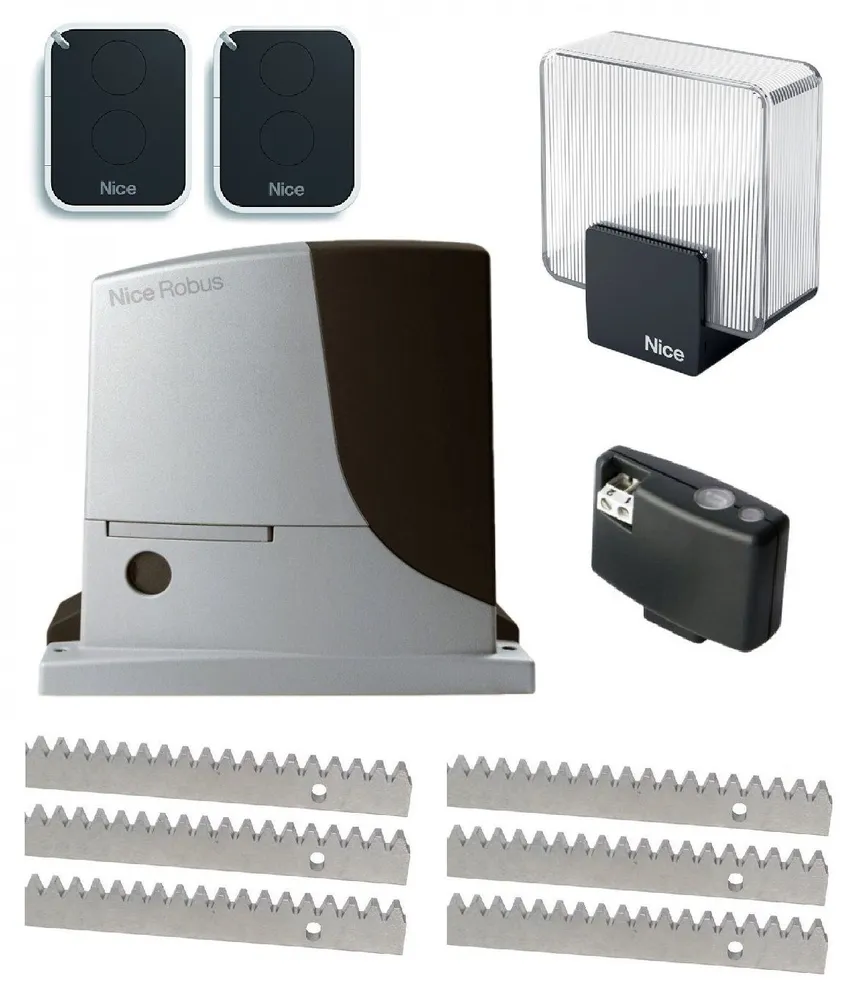 Состав комплекта: RB600 Привод для откатных ворот-1шт, OXIBD Приемник OXIBD с обратной связью-1шт, Пульт управления ON2E-2шт, Лампа светодиодная сигнально-диагностическая ELDC -1шт, Рейка зубчатая ROA8 - 6 метров.